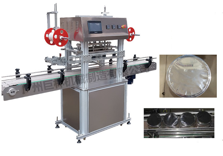 本机是跟据市场需求开发研制的新型流水线式全自动封口机,封口膜为塑料复合卷材,针对塑料瓶,桶,罐子,可直接封口,自动冲裁,自动排废料,解决了一些没有盖子瓶子的封口难题,节省人力资源,可一次性封两瓶,四瓶,提高生产效率,深受广大用户欢迎。