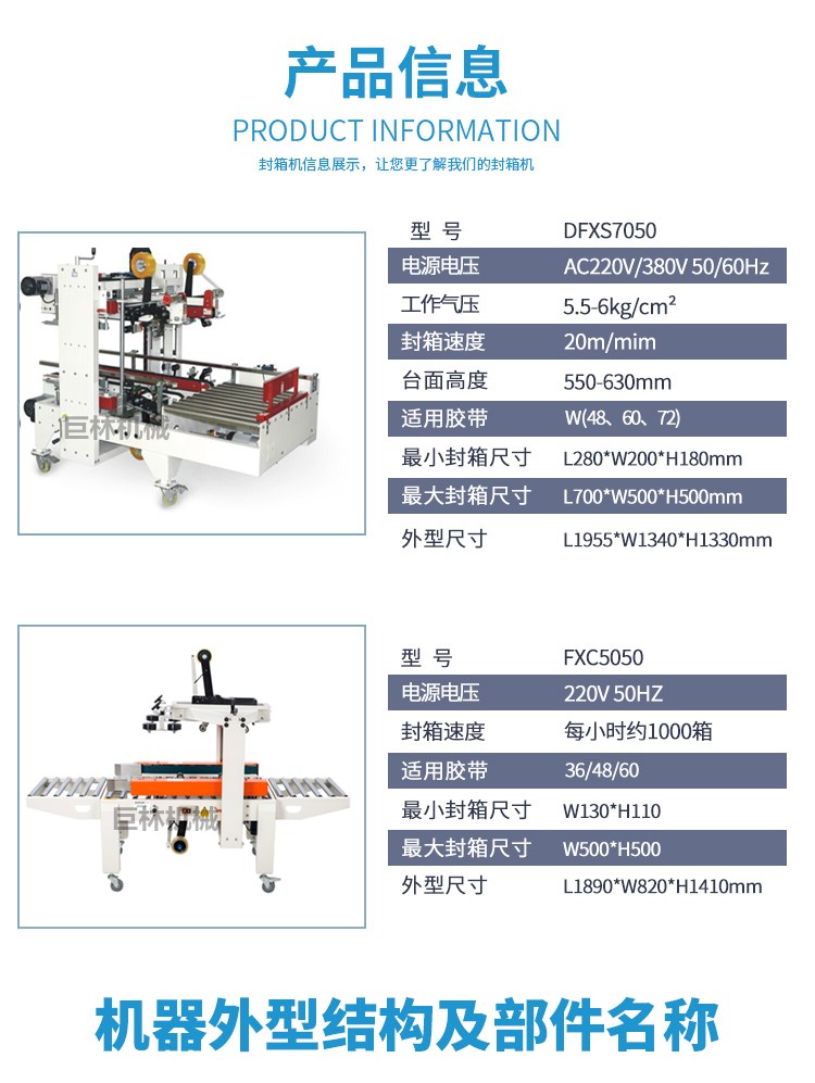 【 DFXS7050四角边全自动封箱机+FXC5050左右驱动封箱机 】详细信息