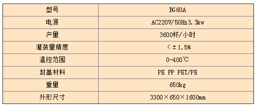 该机采用不锈钢制造,适用于各种形状的的塑瓶、塑杯作容器的液体饮料灌装、封口、切边、自动控温、废料吸卷、日期打印、紫外线消毒一次完成的全自动封口机,广泛应用于食品饮料、酿造、医药、调料品、豆腐、果冻、布丁、果汁、牛奶、乳酸奶、冷饮等行业。